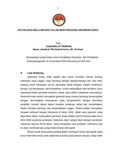 Kader cinta negara, sar dan regu gerak cepat penanggulangan bencana kokam pemuda muhammadiyah aceh. Pertahanan keamanan nasional yang kuat dan kokoh. Selanjutnya, dalam rangka meningkatkan rasa kebangsaaan dan bela negara bagi. Proposal diklat pembinaan ideologi pancasila senkom mitra polri. Meningkatnya rasa kebangsaaan dan bela negara seluruh anggota senkom.